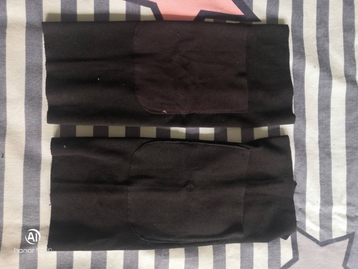 黑色德绒保暖护膝计两对,带口袋设计可放暖宝,柔软舒适,弹力均匀贴身。适...