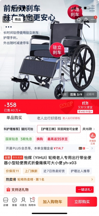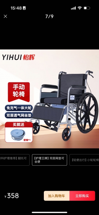 怡辉轮椅298元出!全新带便盆,原价358!