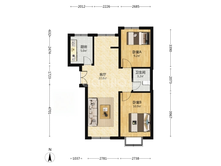 唐家岭新城电梯两居310万