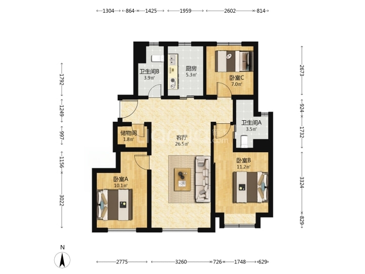 幸福里次新三居737万看房有钥匙
