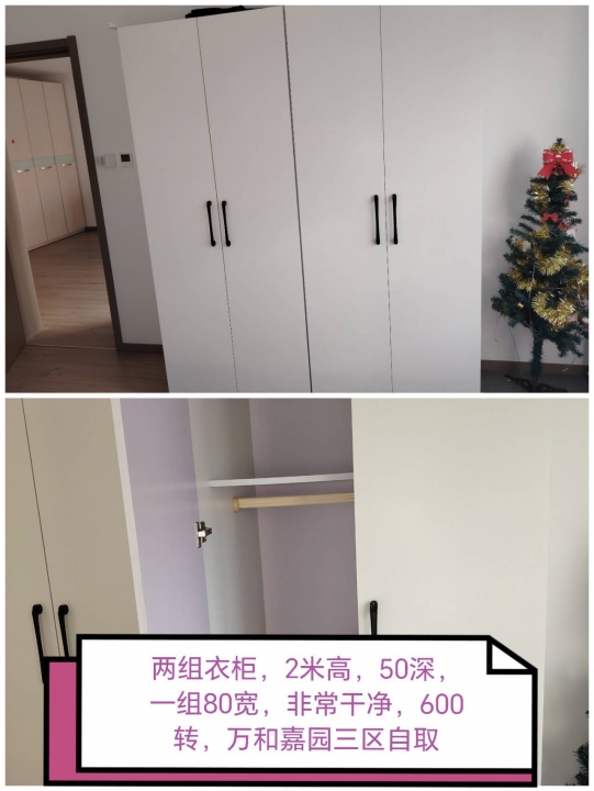 全新衣柜两组,每组的尺寸都是2米高,50深,80宽,里面结构合理,成色很新...
