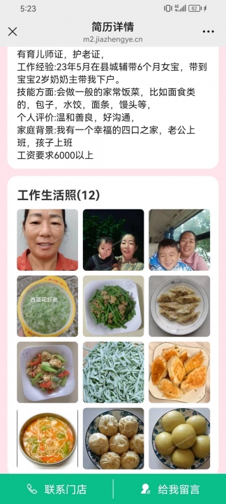 随时上户保姆推荐:阿姨:白班/住家技能:育儿/护老