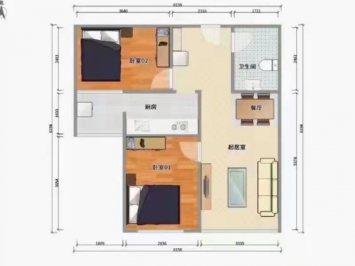 2室2厅,大两居,带电梯,南北通透,户型方正,家具家电齐全。